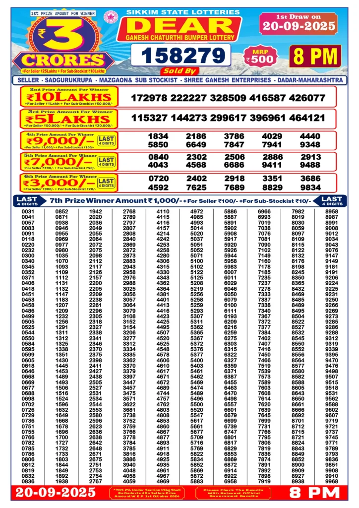 The 2025 edition of the Ganesh Chaturthi Bumper is expected to offer massive prizes, including a huge first prize, attractive second and third prizes, and multiple consolation rewards. Thousands of hopeful participants eagerly wait for the result, which is published live on official websites and newspapers. Winners can also download the PDF result to easily verify their ticket numbers.