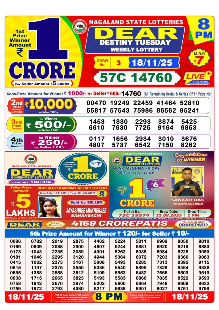 - Morning Draw Winner: A farmer in Nagaland received ₹1 crore. He plans to apply the cash to shop for present-day farming gadgets and enhance his family standard of living.